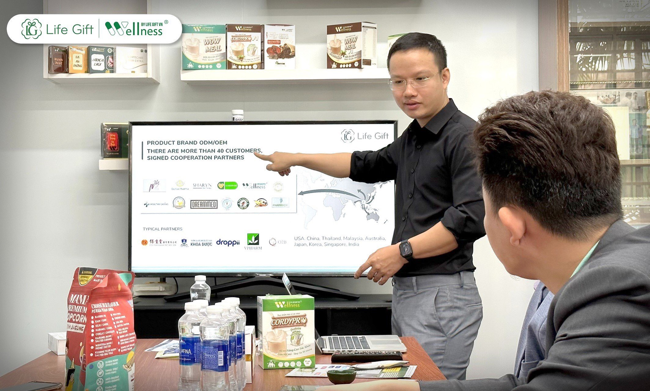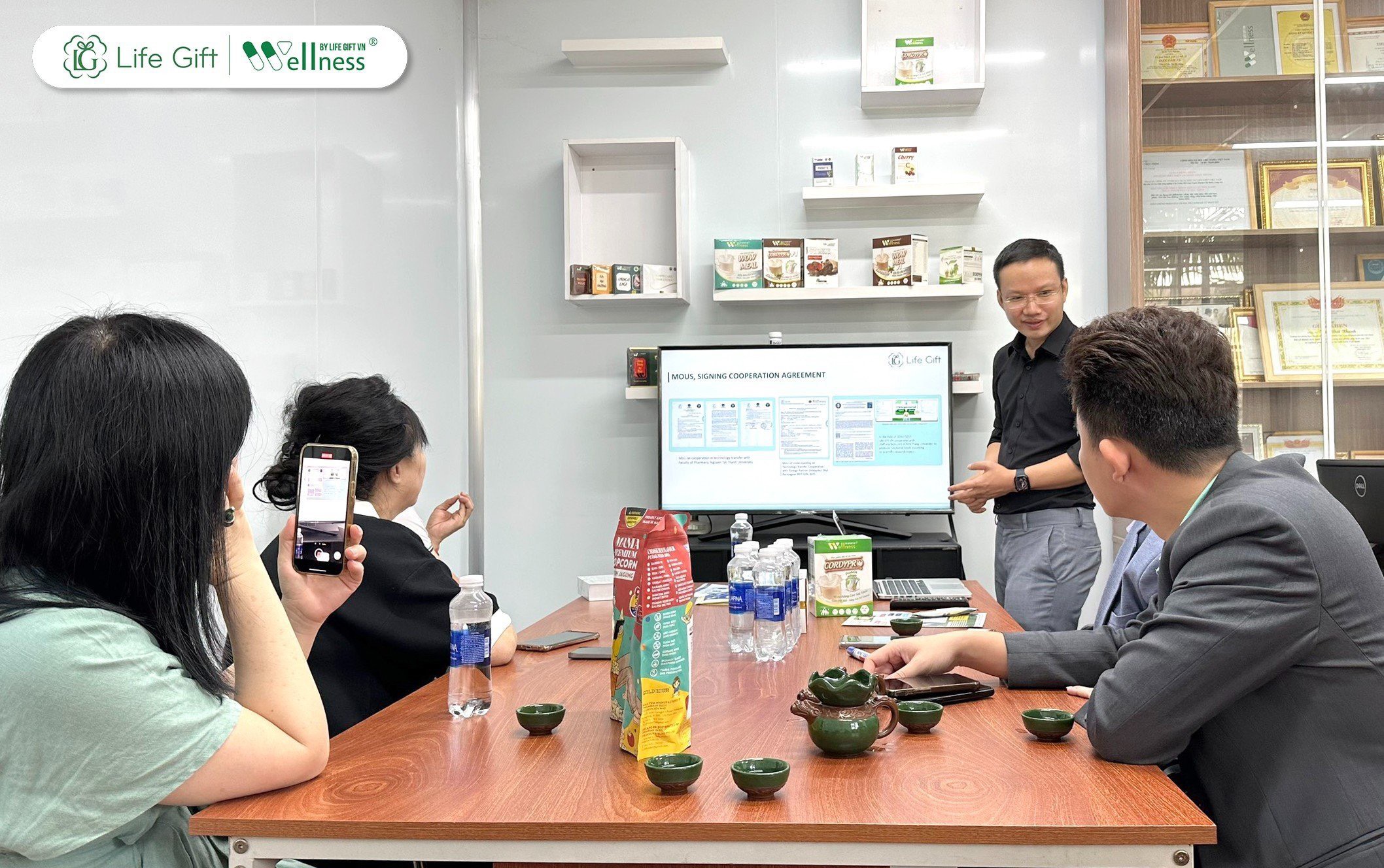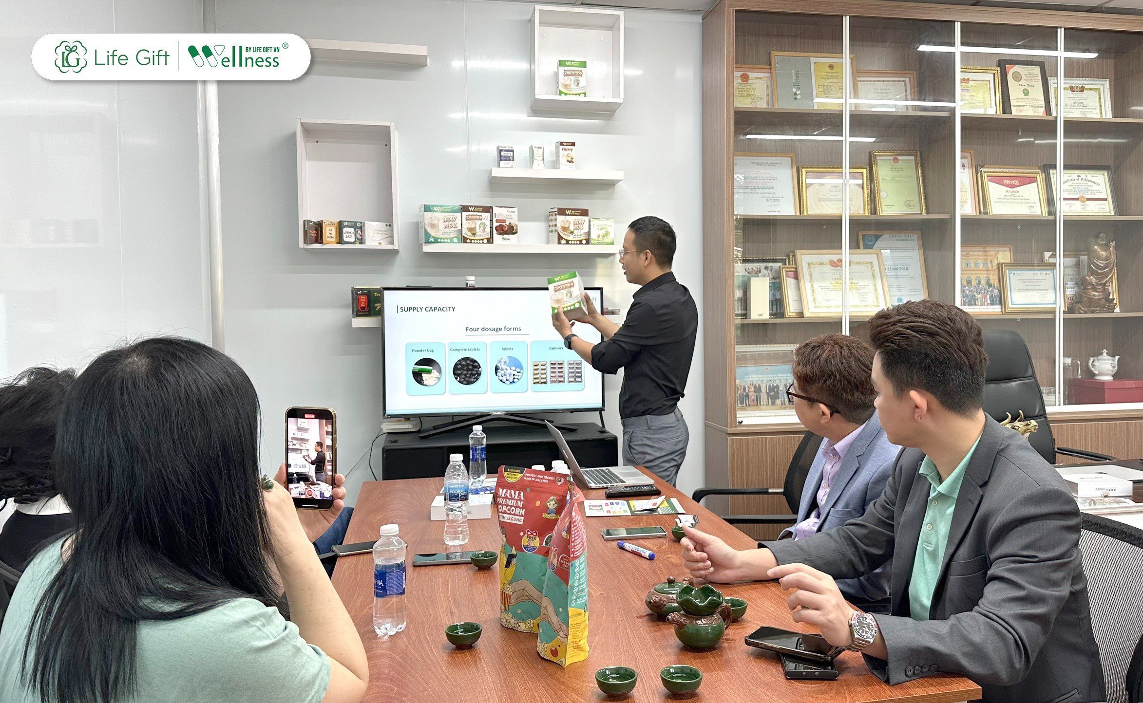 Theo đó, Ban lãnh đạo Life Gift đã giới thiệu hồ sơ năng lực công ty về cơ sở vật chất, hệ thống máy móc hiện đại, sản phẩm phân khúc trên thị trường,… sau đó, Đoàn doanh nghiệp được hướng dẫn tham quan chi tiết.