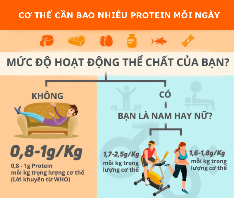Protein rất cần thiết trong quá trình tập luyện thể thao. Vậy cần nạp bao nhiêu là đủ? Theo các chuyên gia, tùy vào mức độ luyện tập của từng người mà nhu cầu nạp chất đạm sẽ khác nhau, cụ thể như: